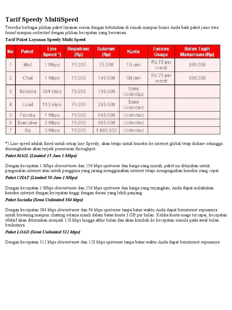 Tarif speedy multispeed tersedia berbagai pilihan paket layanan sesuai dengan kebutuhan di rumah maupun bisnis anda baik paket jenis time based maupun unlimited dengan pilihan kecepatan yang bervariasi. Namun sayangnya paket dan jaringan yang di sediakan oleh operator ini tidak seperti operator lainnya misalnya paket internet telkomsel, karena sebagian meski tidak senyaman para pengguna yang berada di perkotaan. 1123 x 1600 jpeg 509 кб. 611 x 193 png 21 кб. Paket speedy untuk wilayah medan dan sekitarnya untuk info dan pemasangan hubungi :